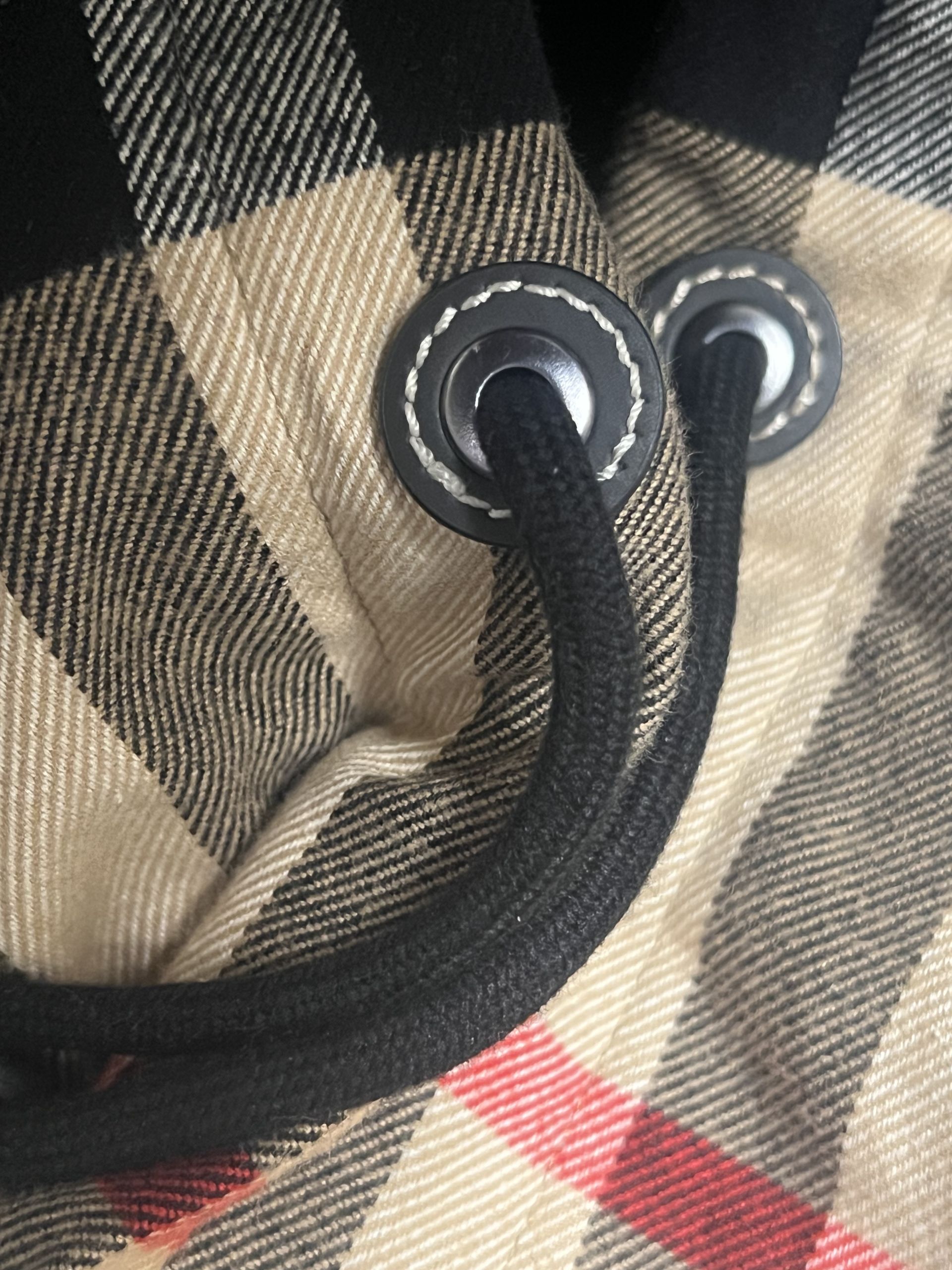 Classic version hoodie, made of selected cotton fabric, bright eyes with contrast flannel plaid hoodie design, rope embellished with leather decoration.